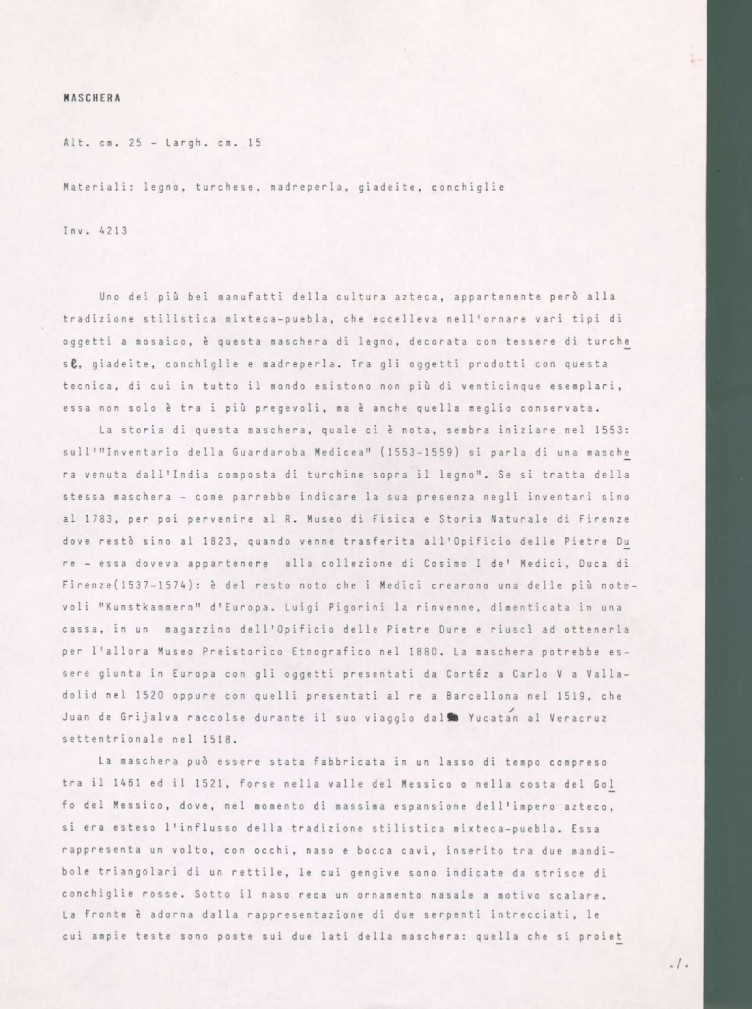| Scheda tecnica, maschera messicana Fonte testuale | Fonte testuale | ||||||
