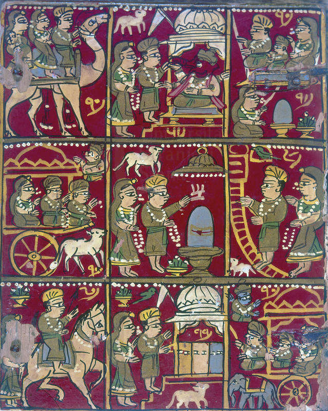 | Scene della vita del Maharaja (maharajah), tessuto a mano dipinto, India Fonte visiva 1965 | Fonte visiva | 1965 | |||||