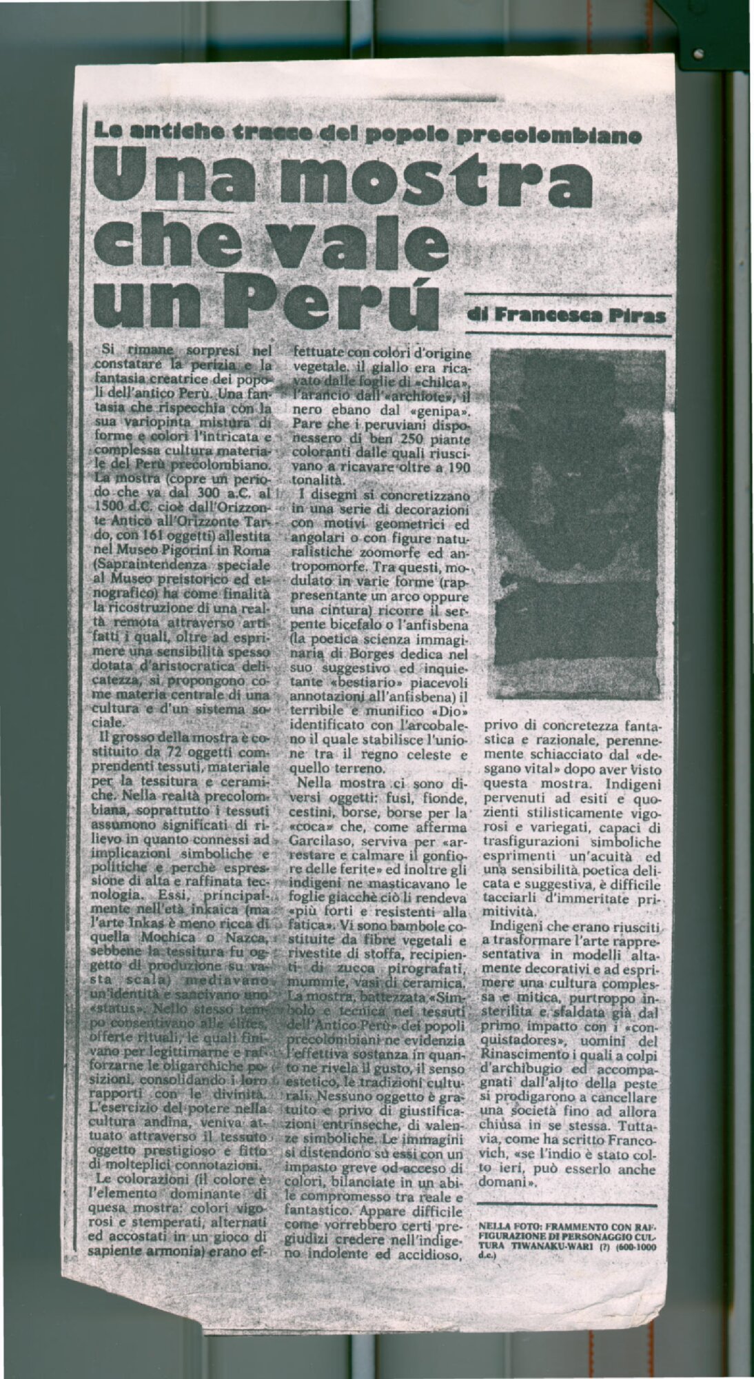 | Una mostra che vale un Perù Fonte testuale 01-06-1982 | Fonte testuale | 01-06-1982 | |||||
