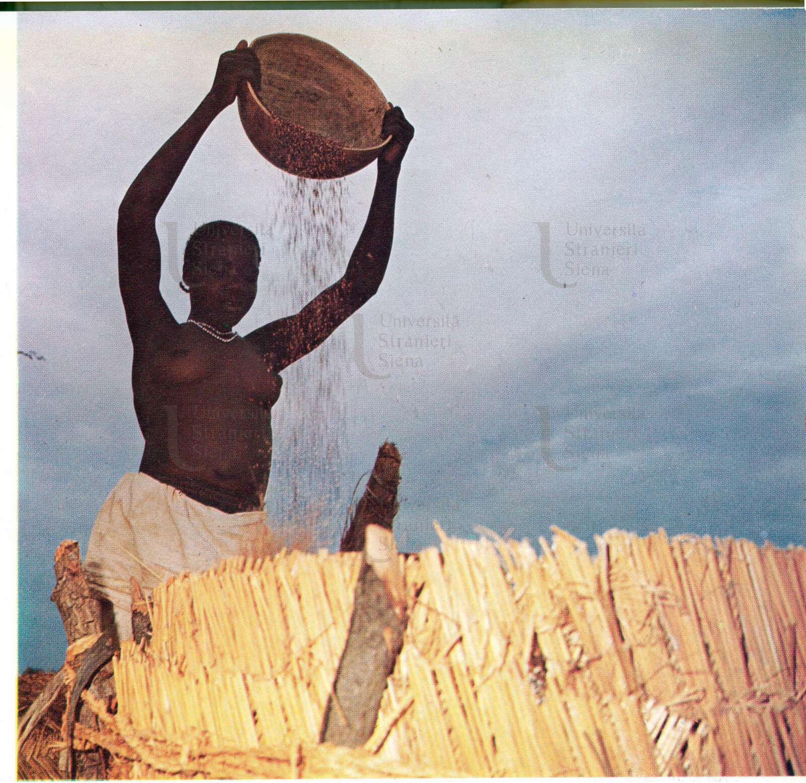 | Una ragazza Mossí setaccia il miglio versandolo in un granaio all'aperto Fonte visiva 1963 | Fonte visiva | 1963 | |||||