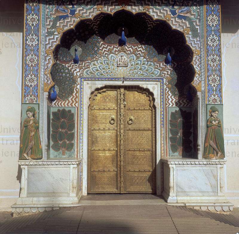 | Una delle porte del Palazzo del Maharaja, Jaipur, stato del Rajasthan Fonte visiva 1965 | Fonte visiva | 1965 | |||||
