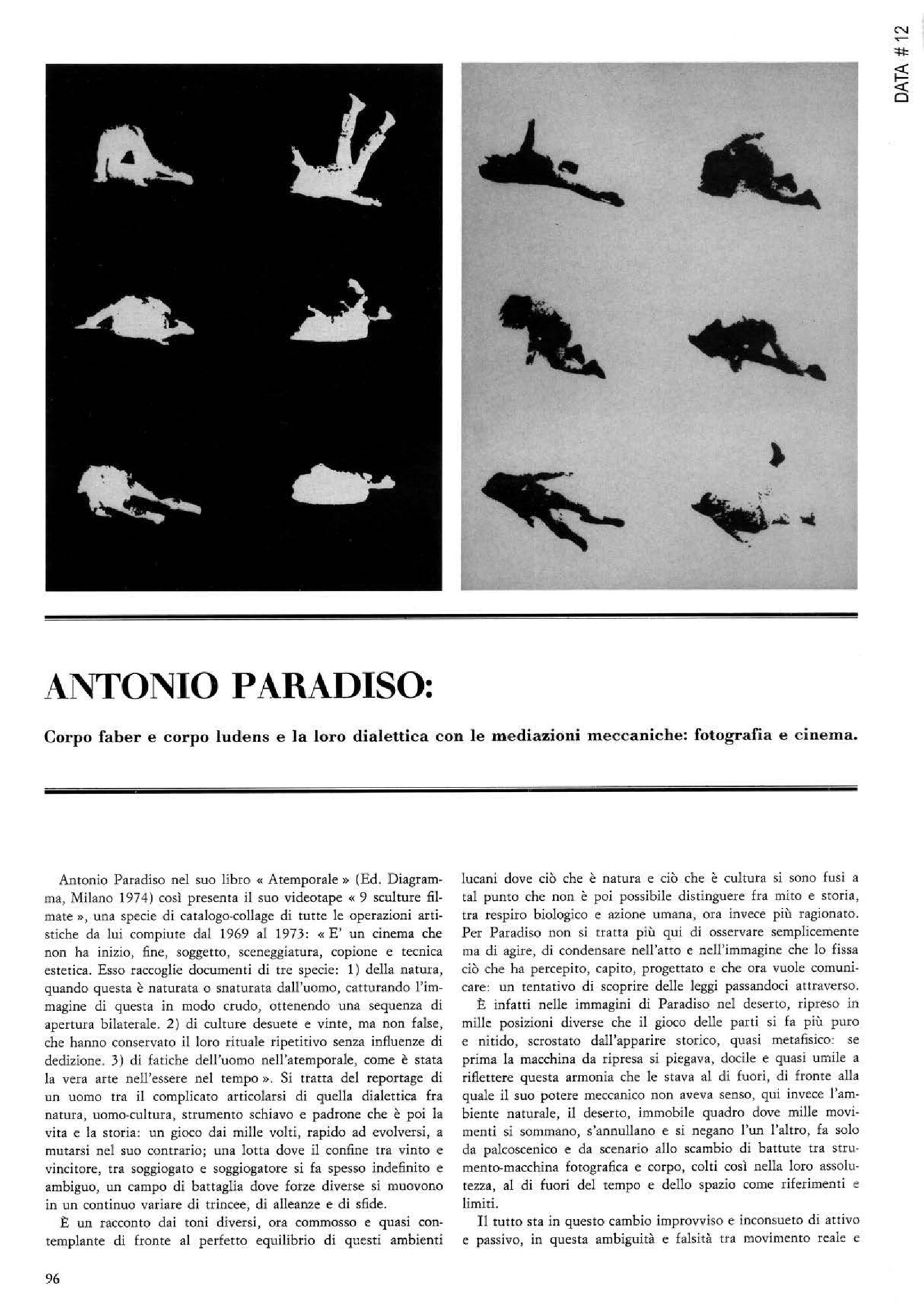 | Antonio Paradiso: Corpo faber e corpo ludens e la loro dialettica con le mediazioni meccaniche: fotografia e cinema Fonte testuale [01-06-1974 - 30-06-1974] | Fonte testuale | [01-06-1974 - 30-06-1974] | |||||