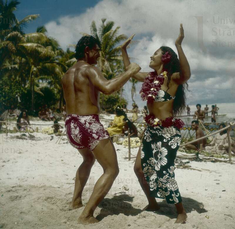 | Isole della Società. Isole del Vento. Tahiti. Danza in costume polinesiano tradizionale |  |