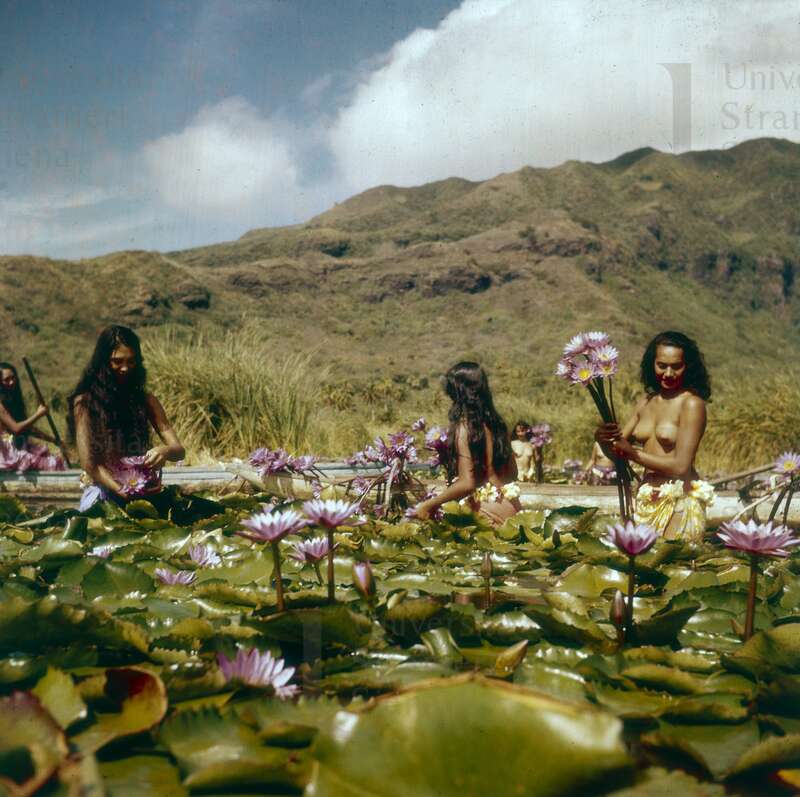 | Isole della Società. Isole del Vento. Moorea. Raccolta di fiori in laguna per una festa collettiva |  |