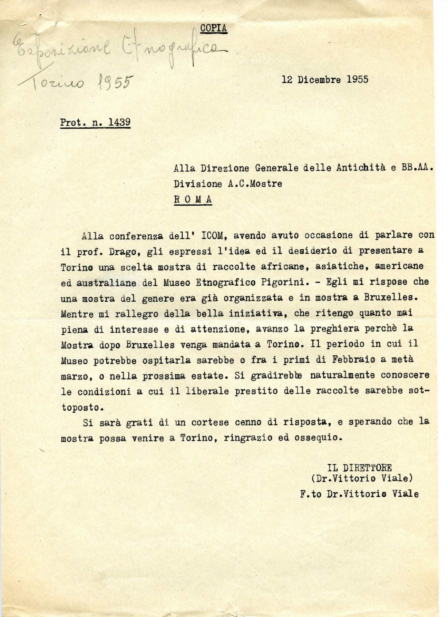 | Lettera di Vittorio Viale alla Direzione generale delle Antichità e BB.AA, Roma Fonte testuale 12-12-1955 | Fonte testuale | 12-12-1955 | |||||