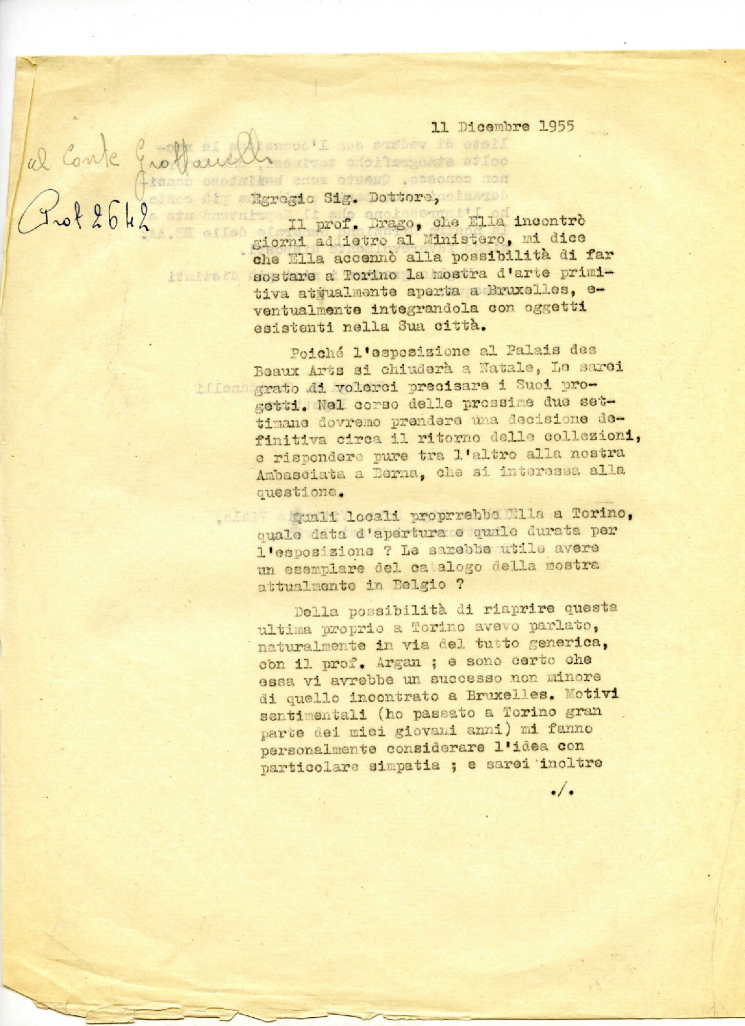 | Lettera di Vinigi Grottanelli a Vittorio Viale Fonte testuale 11-12-1955 | Fonte testuale | 11-12-1955 | |||||