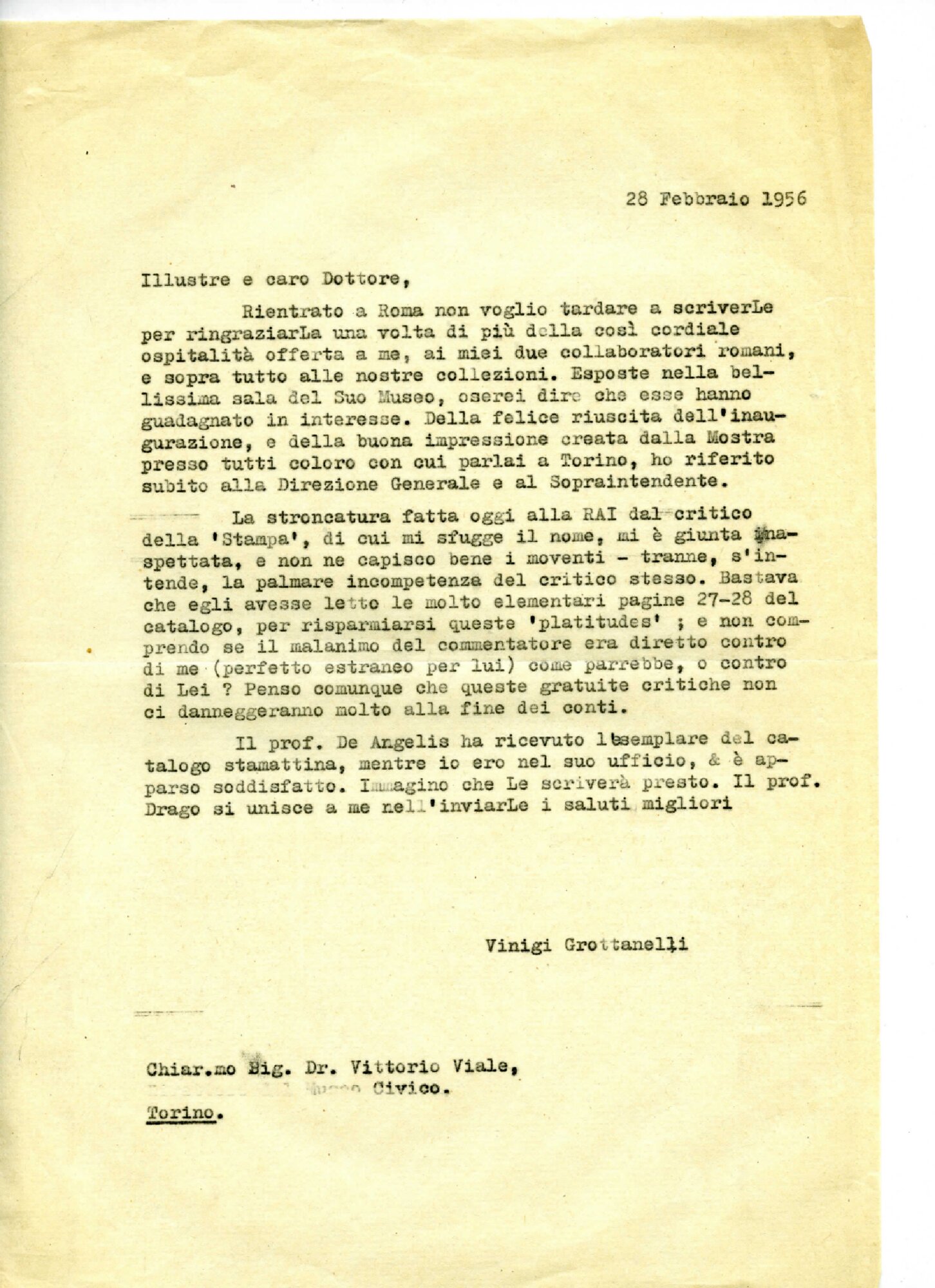 | Lettera di Vinigi Grottanelli a Vittorio Viale Fonte testuale 28-02-1956 | Fonte testuale | 28-02-1956 | |||||