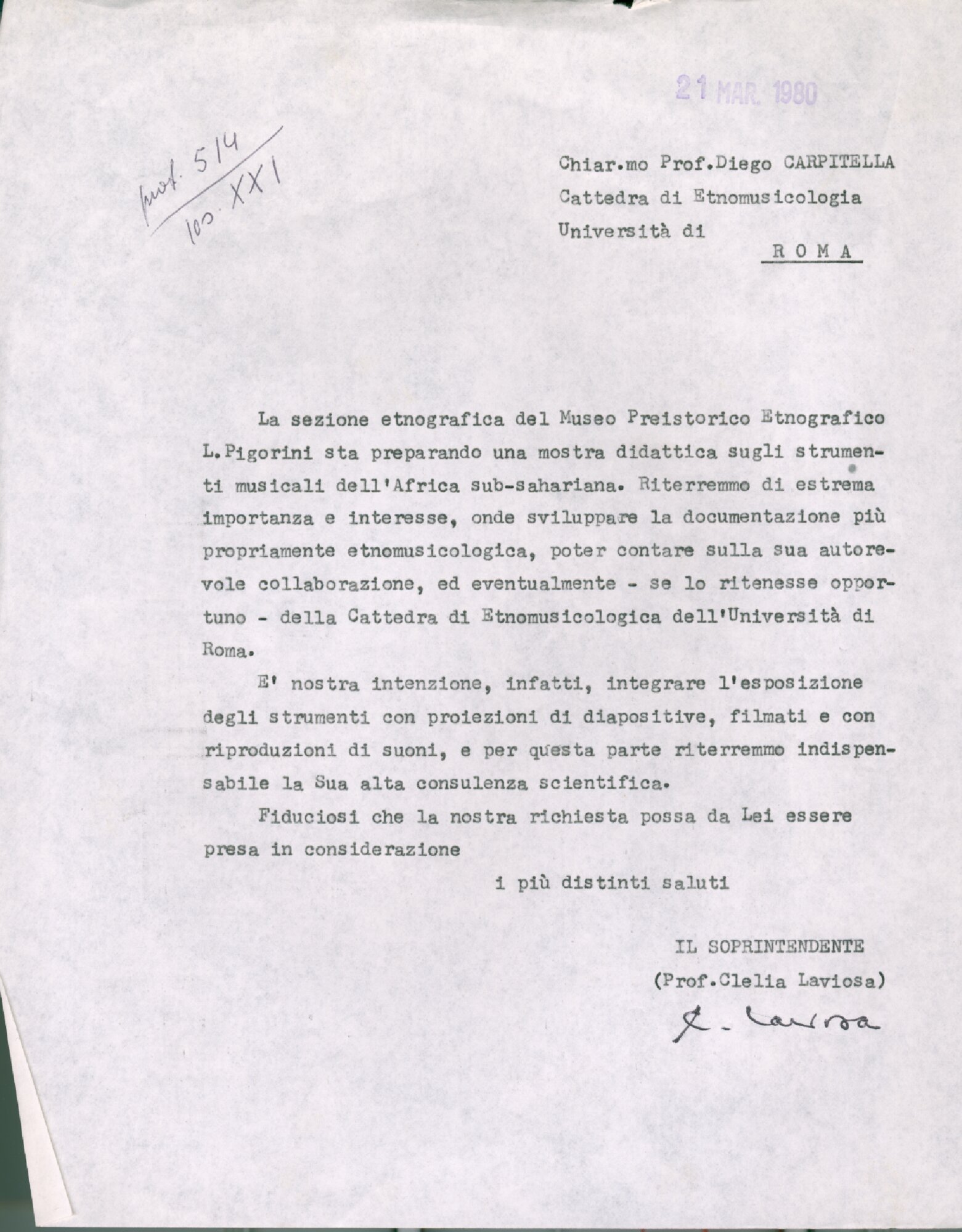 | Lettera di Laviosa a Carpitella Fonte testuale 21 marzo 1980 | Fonte testuale | 21 marzo 1980 | |||||