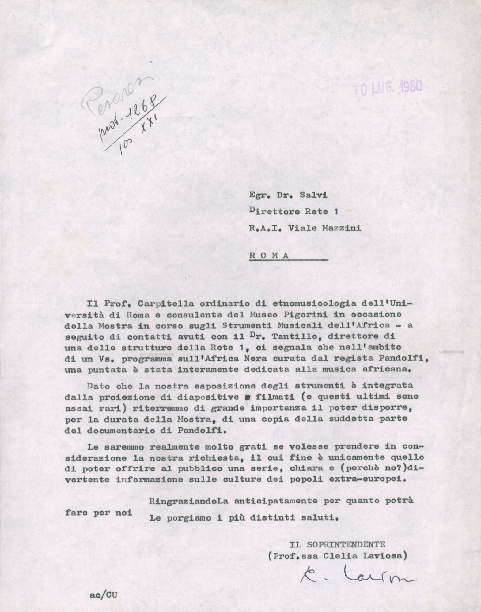 | Lettera di Laviosa a Salvi Fonte testuale 10 luglio 1980 | Fonte testuale | 10 luglio 1980 | |||||