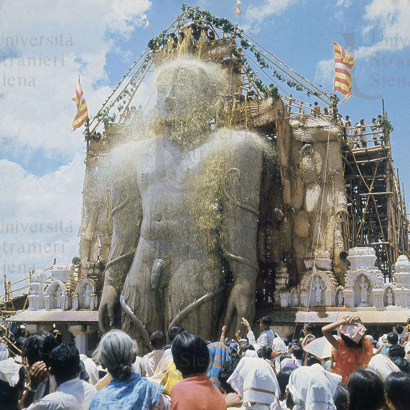 | L'offerta del latte sacro, durante una festività giainista, alla colossale statua del santo giaina "Gomateswara" Fonte visiva 1965 | Fonte visiva | 1965 | |||||