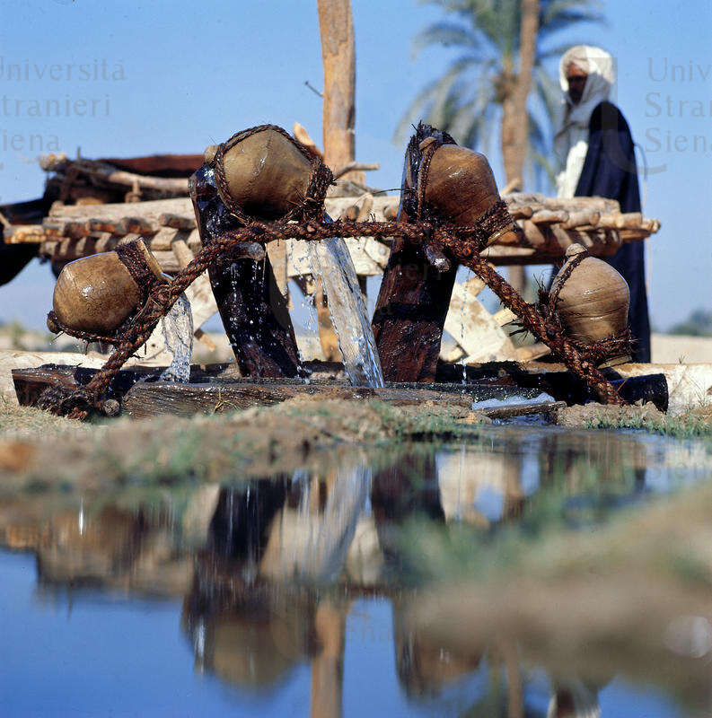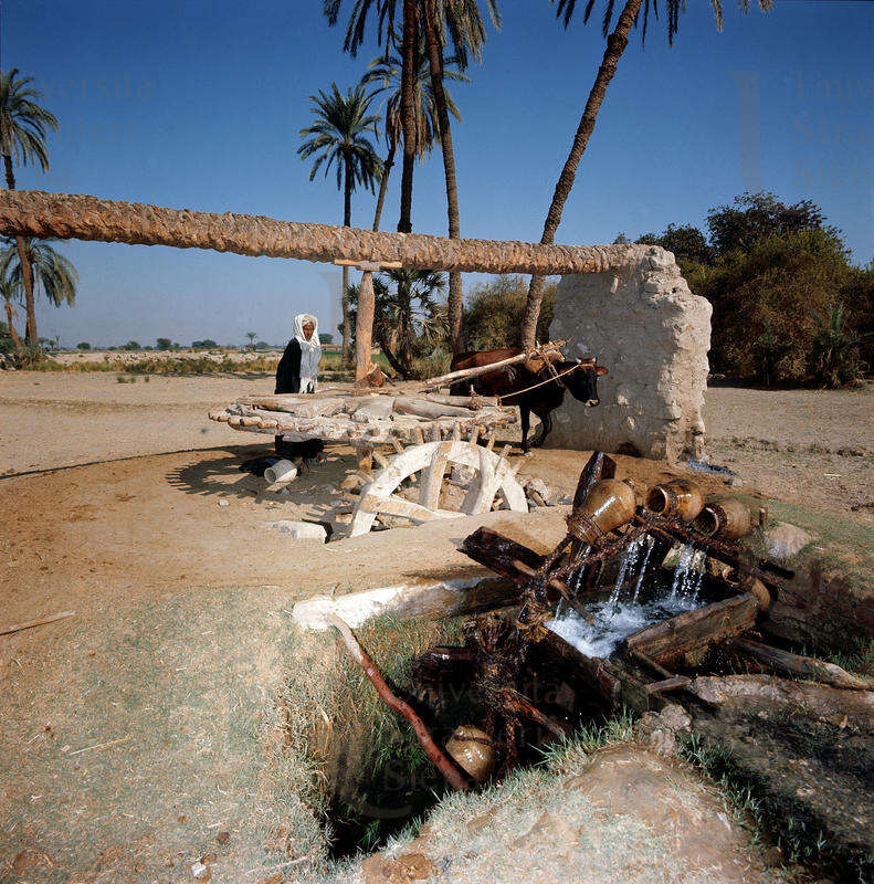 | Lungo il Nilo un'arcaica ruota dentata, mossa da un bue. Fonte visiva 1968 | Fonte visiva | 1968 | |||||