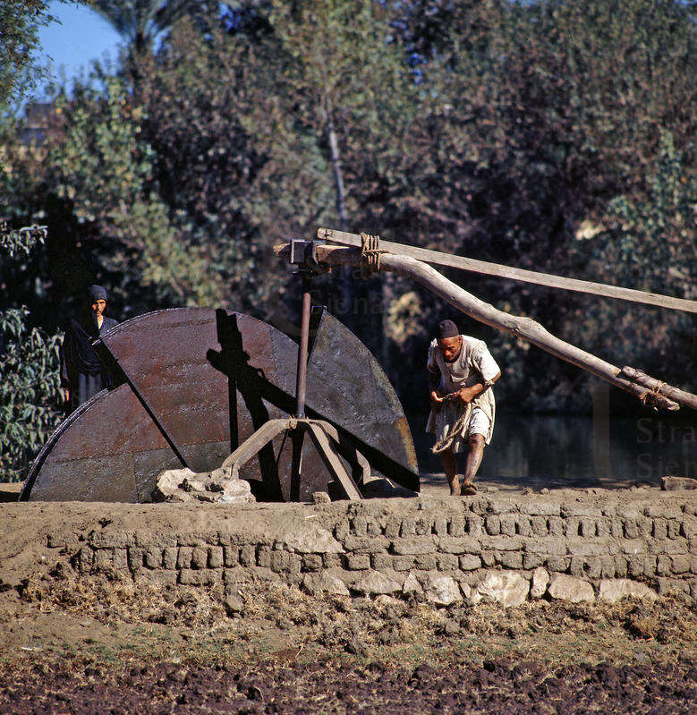 | Lungo le rive del Nilo, una ruota di ferro, mossa da un bue bendato, irriga i campi Fonte visiva 1968 | Fonte visiva | 1968 | |||||
