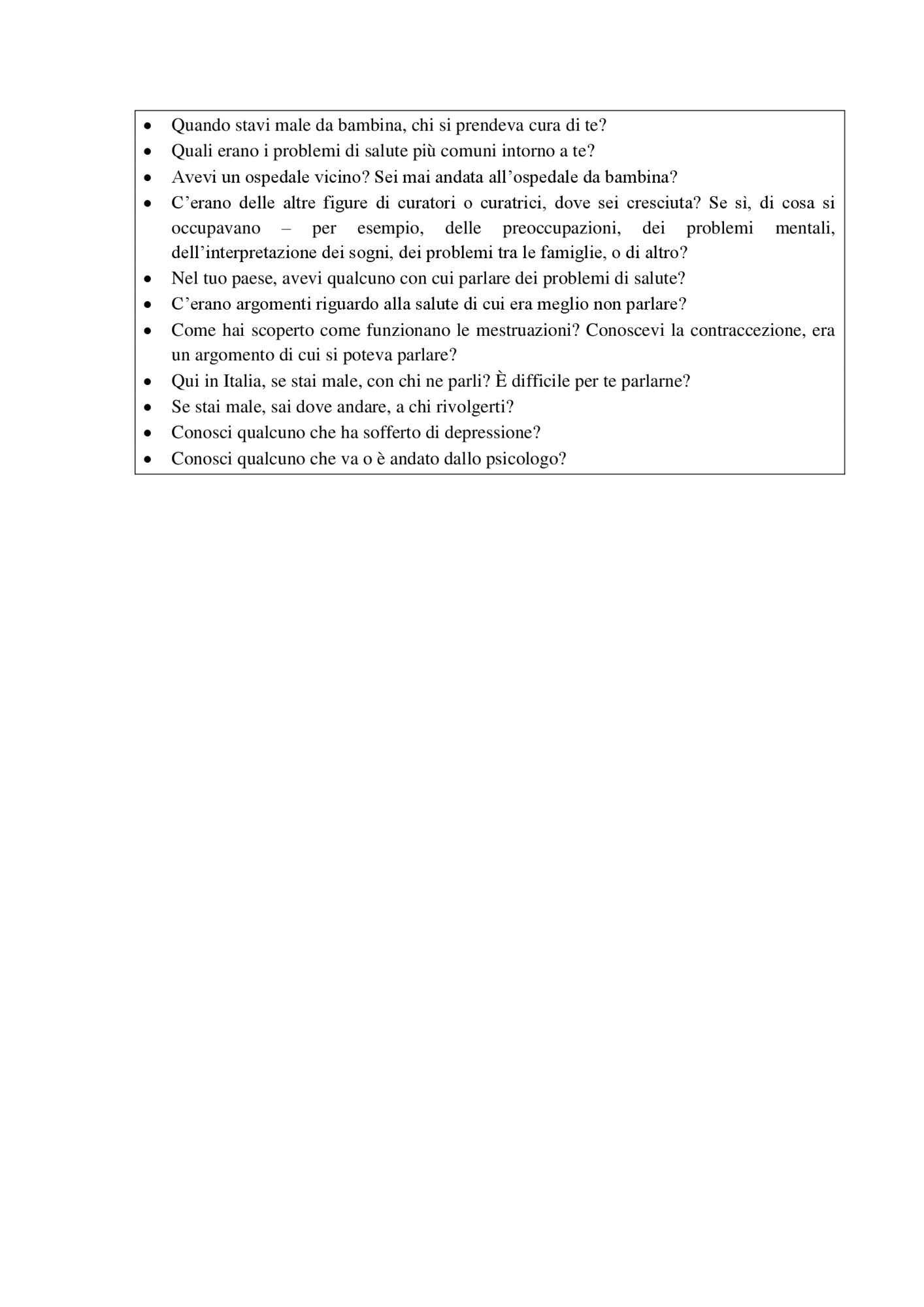 | Strumento 2: Attività del laboratorio di storytelling: domande aperte sulla cura e il benessere nel proprio paese e in Italia (4891) |  |