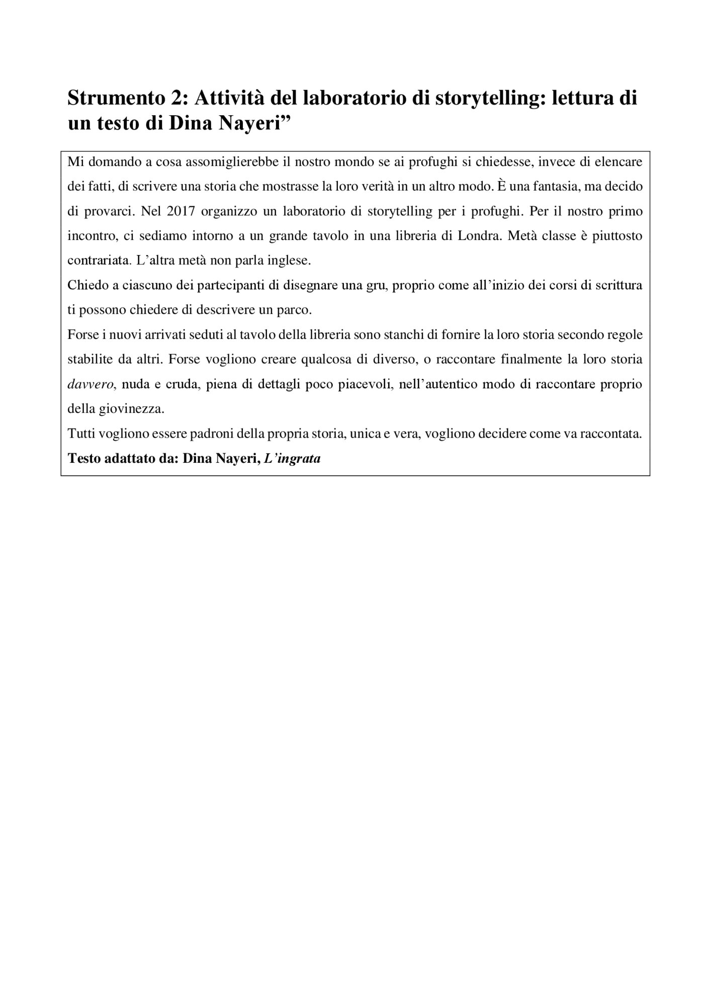 | Strumento 2: Attività del laboratorio di storytelling: lettura di un testo di Dina Nayeri (4900) |  |