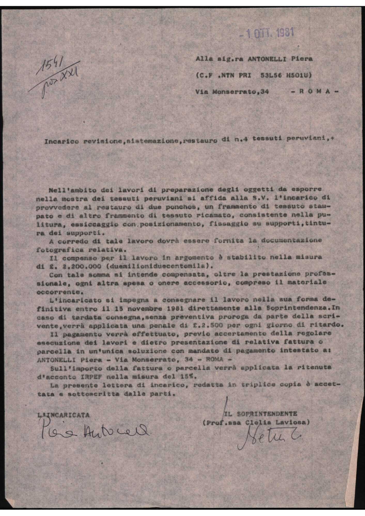 | Incarico revisione, sistemazione, restauro di n. 4 tessuti peruviani (3223) |  |